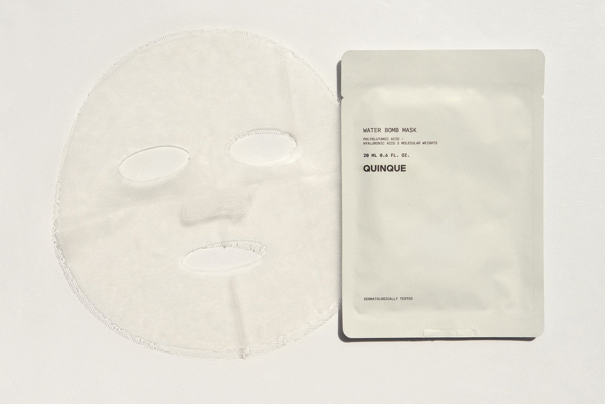 Water Bomb Mask es una bomba de hidratación cargada de ácido hialurónico de diferente peso molecular que penetra en la piel mejorando su hidratación, elasticidad y suavidad, y enriquecida con activos que refuerzan la barrera cutánea y contribuyen a retener la hidratación de la piel. La fórmula impregna un tejido innovador 100% natural a base de algodón y fibras de frutas muy cómodo de aplicar. La sensación de frescor y alivio y la hidratación son inmediatas, lo que la hace idónea después de la exposición al sol o de la realización de tratamientos estéticos.